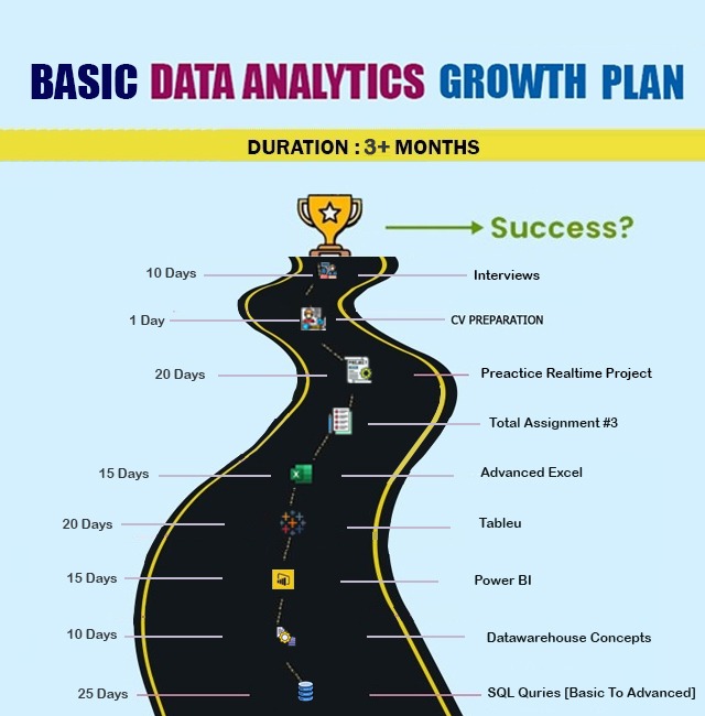 The total duration of these Trainings are dependent on the selected courses. We are providing 4 courses in a Data Analytics Growth Plan in four plus months.
